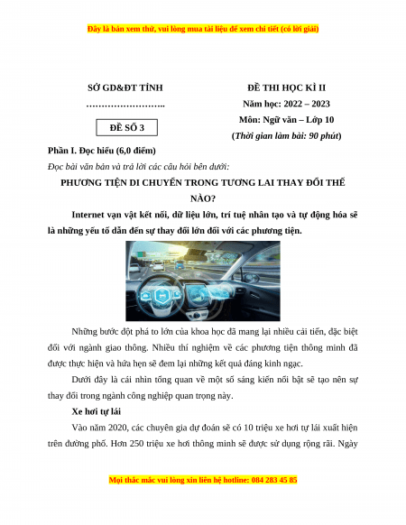 Môn: Ngữ văn – Lớp 10 ĐỀ SỐ 3