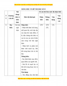 BẢNG ĐẶC TẢ ĐỀ THI HỌC KÌ II