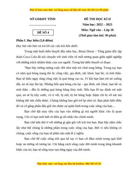 Môn: Ngữ văn – Lớp 10 ĐỀ SỐ 4