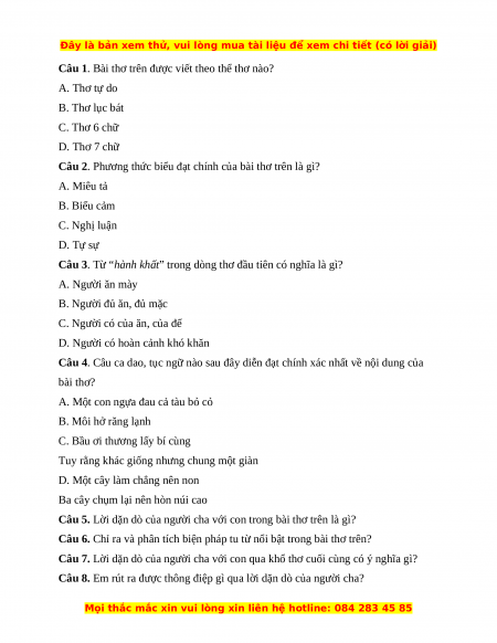 Đây là bản xem thử, vui lòng mua tài liệu để xem chi tiết (có lời giải)