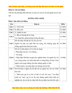 Phần I. Đọc hiểu (5,0 điểm) Câu Đáp án Điểm Câu 1 C. Thơ 6 chữ 0,5 điểm Câu 2 B. Biểu cảm 0,5 điểm