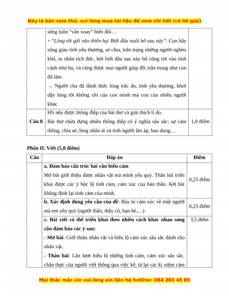 Phần II. Viết (5,0 điểm) Câu Đáp án Điểm