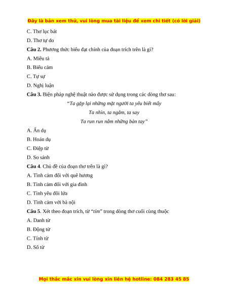 Chúng tôi đảm bảo đủ số lượng đề đã cam kết hoặc có thể nhiều hơn, tất cả có BẢN WORD, LỜI GIẢI CHI TIẾT và tải về dễ dàng.