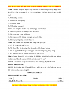 Phần I. Đọc hiểu (6,0 điểm) Câu Đáp án Điểm Câu 1 D. Thơ tự do 0,5 điểm