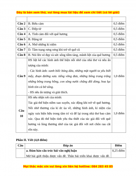 Câu 8 B. Nói lên vẻ đẹp và sức sống tiềm tàng, mãnh liệt của quê hương 0,5 điểm