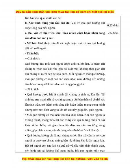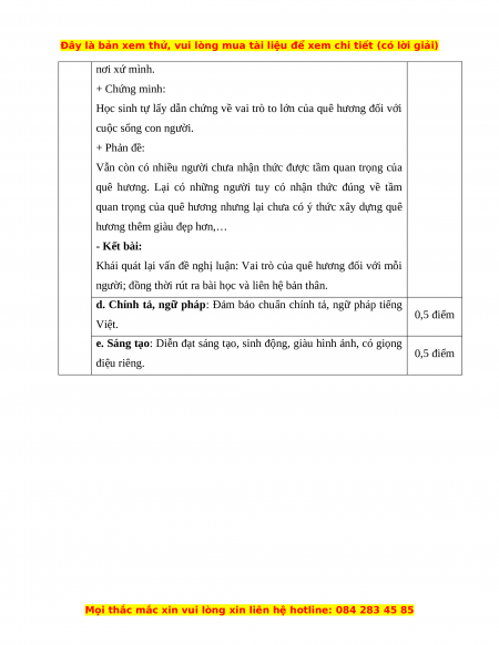 b. Xác định đúng yêu cầu của đề: Vai trò của quê hương với