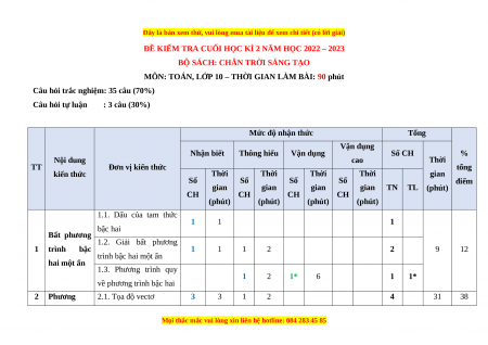 MÔN: TOÁN, LỚP 10 – THỜI GIAN LÀM BÀI: 90 phút