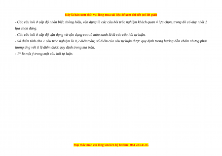 - Các câu hỏi ở cấp độ vận dụng và vận dụng cao tô màu xanh lá là các câu hỏi tự luận.