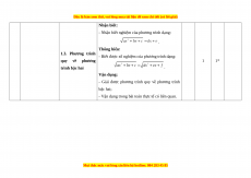 1.3. Phương trình - Biết được số nghiệm của phương trình dạng: quy về phương 1 1* trình bậc hai . Vận dụng:
