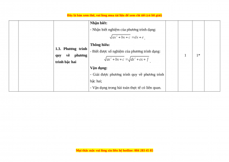 Bất phương 1.2. Giải bất phương 1 trình bậc 1 1 1 2 2 9 12 trình bậc hai một ẩn hai một ẩn 1.3. Phương trình quy 1 2 1* 6 1 1* về phương trình bậc hai 2 Phương 2.1. Tọa độ vectơ 3 3 1 2 4 31 38
