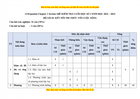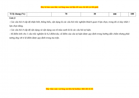 - Các câu hỏi ở cấp độ vận dụng và vận dụng cao tô màu xanh lá là các câu hỏi tự luận.