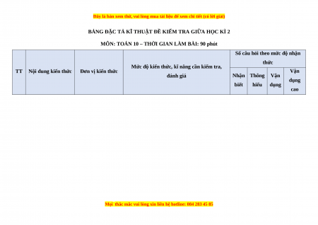 BẢNG ĐẶC TẢ KĨ THUẬT ĐỀ KIỂM TRA GIỮA HỌC KÌ 2
