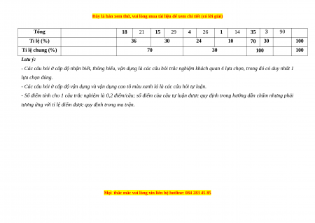 - Các câu hỏi ở cấp độ vận dụng và vận dụng cao tô màu xanh lá là các câu hỏi tự luận.
