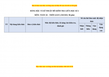 BẢNG ĐẶC TẢ KĨ THUẬT ĐỀ KIỂM TRA GIỮA HỌC KÌ 2