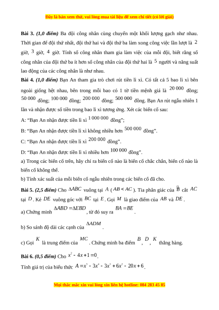 Chúng tôi đảm bảo đủ số lượng đề đã cam kết hoặc có thể nhiều hơn, tất cả có BẢN WORD, LỜI GIẢI CHI TIẾT và tải về dễ dàng.