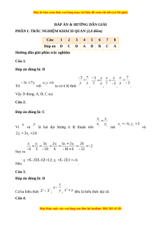 Câu 2. Giả sử và là hai đại lượng tỉ lệ thuận,
