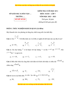 NĂM HỌC 2022 – 2023 MÃ ĐỀ MT201 Thời gian: 90 phút