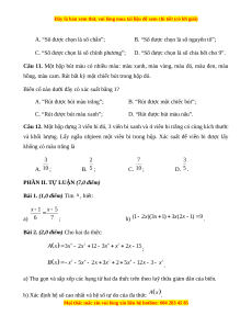 Câu 12. Một hộp đựng 3 viên bi đỏ, 3 viên bi xanh và 4 viên bi trắng có cùng kích thước