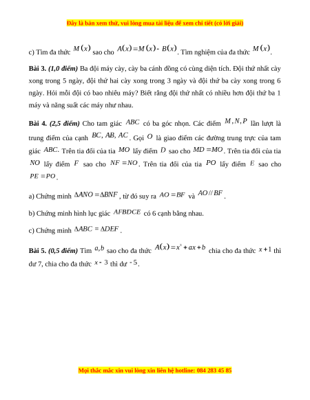 Bài 2. (2,0 điểm) Cho hai đa thức: ; .