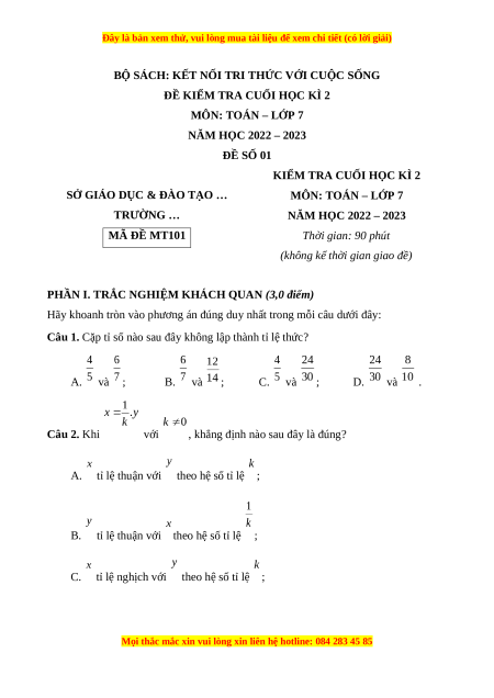 NĂM HỌC 2022 – 2023 MÃ ĐỀ MT101 Thời gian: 90 phút