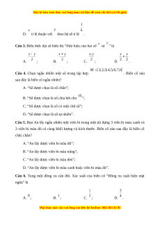 Câu 4. Chọn ngẫu nhiên một số trong tập hợp . Biến cố nào