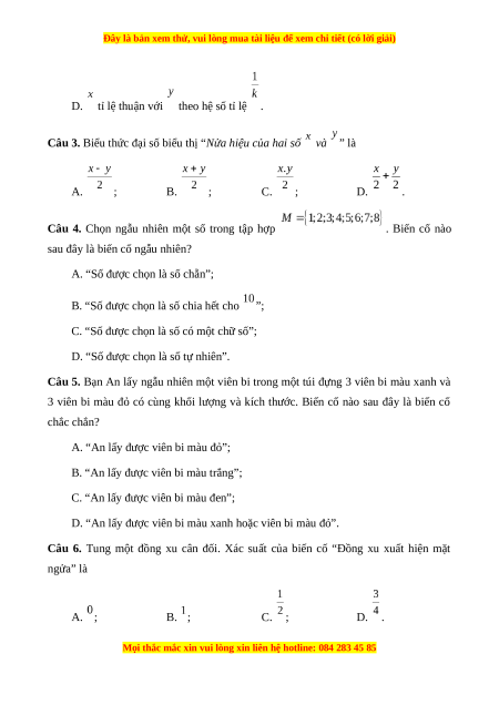 Chúng tôi đảm bảo đủ số lượng đề đã cam kết hoặc có thể nhiều hơn, tất cả có BẢN WORD, LỜI GIẢI CHI TIẾT và tải về dễ dàng.