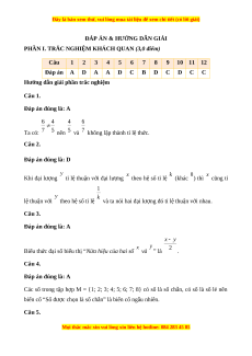 Câu 1. Cặp tỉ số nào sau đây không lập thành tỉ lệ thức? A. và ; B. và ; C. và ; D. và . Câu 2. Khi với