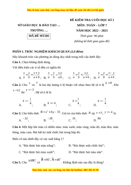 NĂM HỌC 2022 – 2023 MÃ ĐỀ MT205 Thời gian: 90 phút