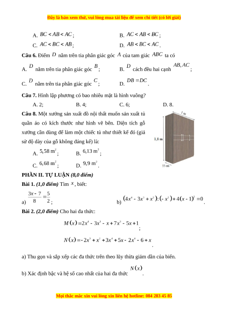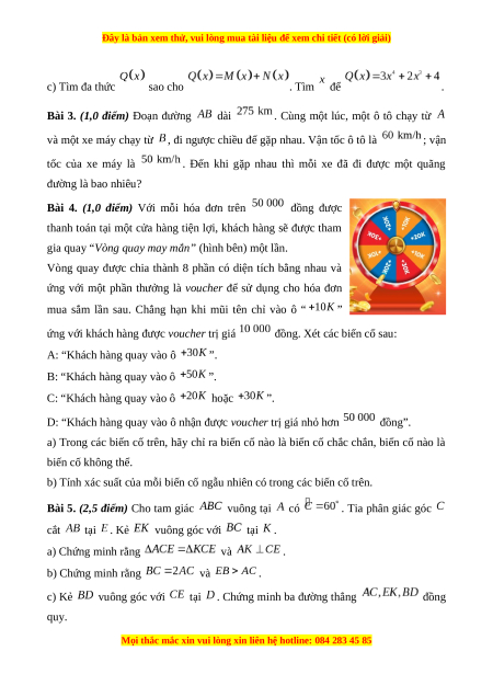 Bài 2. (2,0 điểm) Cho hai đa thức: ; .