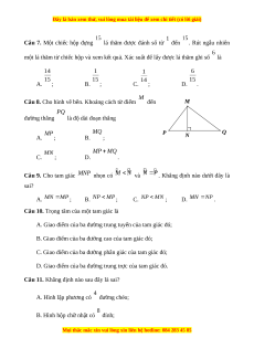 là độ dài đoạn thẳng P Q A. ; B. ; N C. ; D. . Câu 9. Cho tam giác nhọn có và