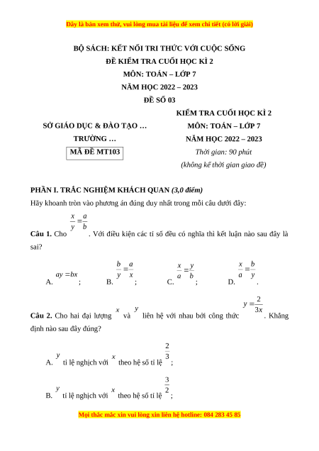 NĂM HỌC 2022 – 2023 MÃ ĐỀ MT103 Thời gian: 90 phút
