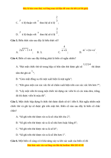 Câu 3. Biểu thức nào sau đây là biểu thức số? A. ; B. 3; C. ; D. .