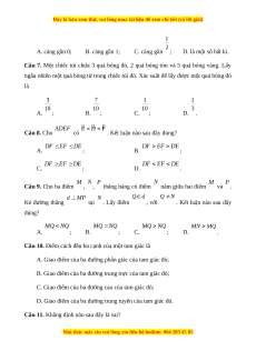 Câu 10. Điểm cách đều ba cạnh của một tam giác là