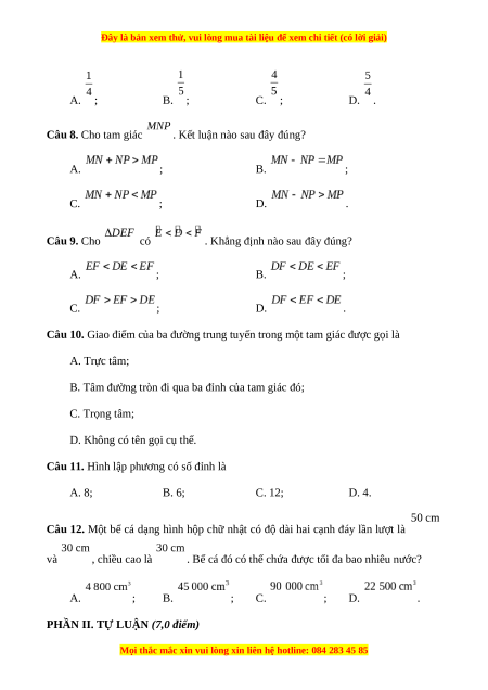 A. ; B. ; C. ; D. . Câu 8. Cho tam giác