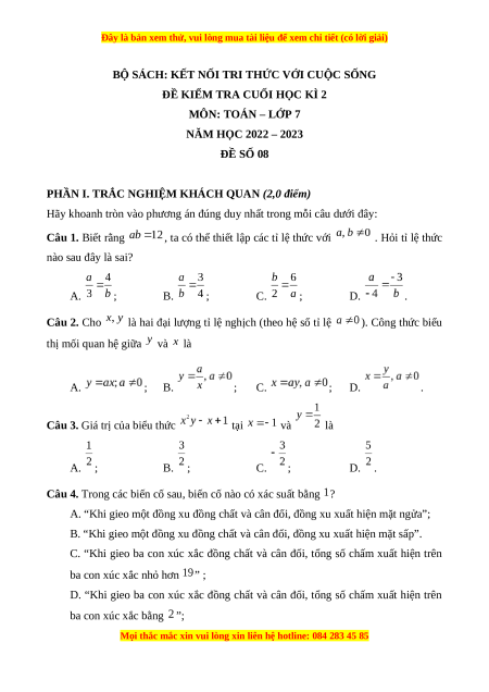 NĂM HỌC 2022 – 2023 ĐỀ SỐ 08