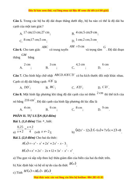 Bài 2. (2,0 điểm) Cho hai đa thức: ; .