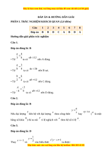 Hướng dẫn giải phần trắc nghiệm Câu 1. Đáp án đúng là: B • Từ ta có nên A đúng. • Từ ta có nên B sai. • Từ ta có nên C đúng. • Từ ta có nên D đúng. Câu 2. Đáp án đúng là: B