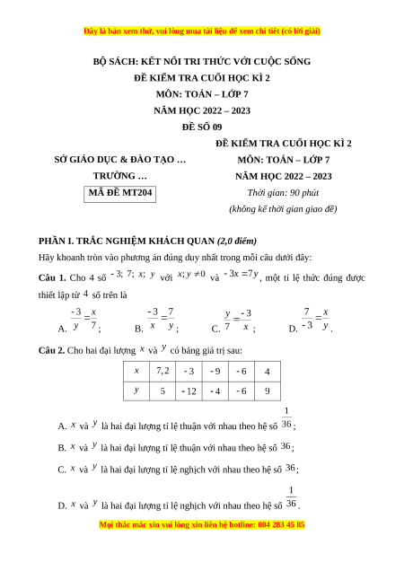 NĂM HỌC 2022 – 2023 MÃ ĐỀ MT204 Thời gian: 90 phút