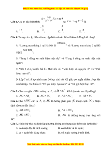 . Kết luận nào sau đây đúng? A. ; B. ; C. ; D. . Câu 6. Cho cân tại , có