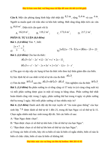 Bài 2. (2,0 điểm) Cho hai đa thức: ; .
