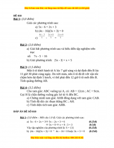 - 5) km/h và thời gian đi từ A đến B hết 12h – 7h = 5h. (0.25đ) Ta có phương trình: ( - 5) . 5 = x (0.25đ) 5x – 25 . 4,5 = 4,5x