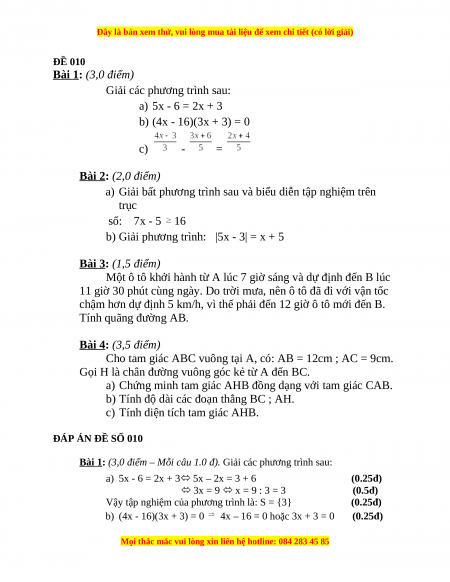Đây là bản xem thử, vui lòng mua tài liệu để xem chi tiết (có lời giải)