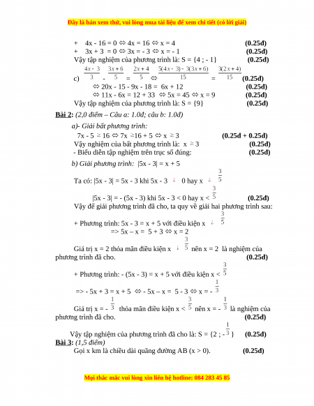 7x - 5 16 7x 16 + 5 x 3 (0.25đ + 0.25đ)
