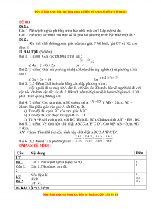 ĐÁP ÁN ĐỀ SỐ 011 Câu Nội dung Điểm LT Đề 1