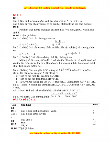 Đây là bản xem thử, vui lòng mua tài liệu để xem chi tiết (có lời giải)