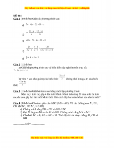 Câu 1 (4,0 điểm) Giải các phương trình sau: a) b) c) d) e) Câu 2 (1,5 điểm)