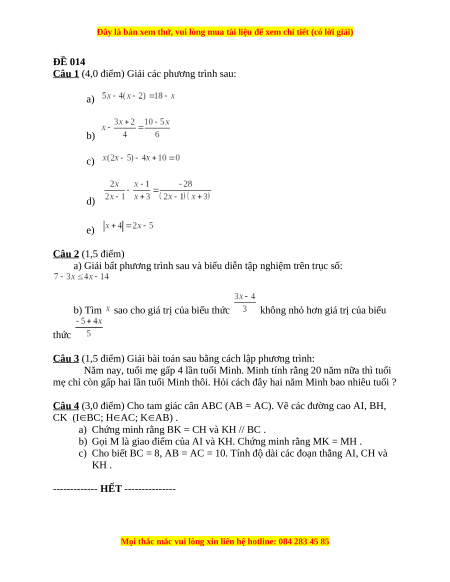 Đây là bản xem thử, vui lòng mua tài liệu để xem chi tiết (có lời giải)