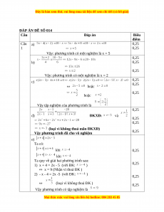 ĐÁP ÁN ĐỀ SỐ 014 Câu Đáp án Biểu điểm Câu a) 0,25 1 0,25