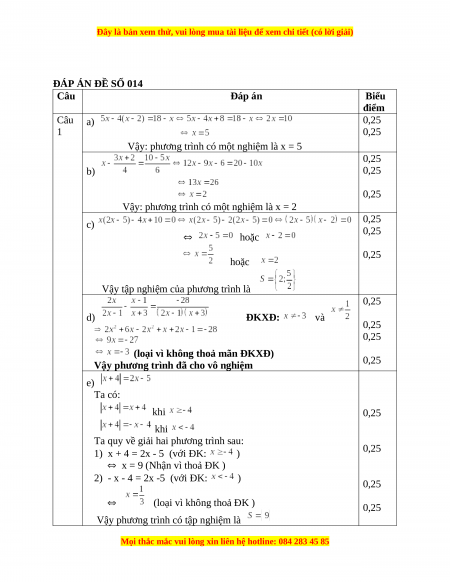 Vậy: phương trình có một nghiệm là x = 5 0,25 b) 0,25 0,25