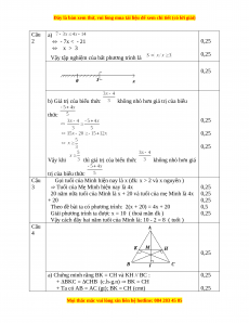 Vậy: phương trình có một nghiệm là x = 2 c) 0,25 0,25 hoặc 0,25 hoặc